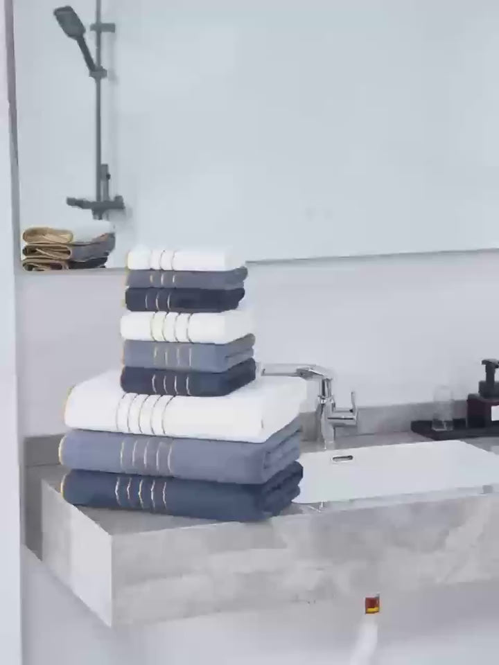 Complete Set: Includes 2 bath towels (70×140cm), 2 hand towels (42×70cm), and 4 square face towels (34×34cm) — everything you need for your daily routine.